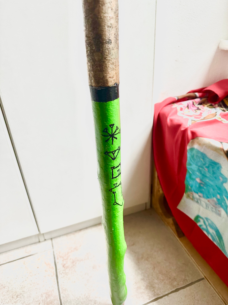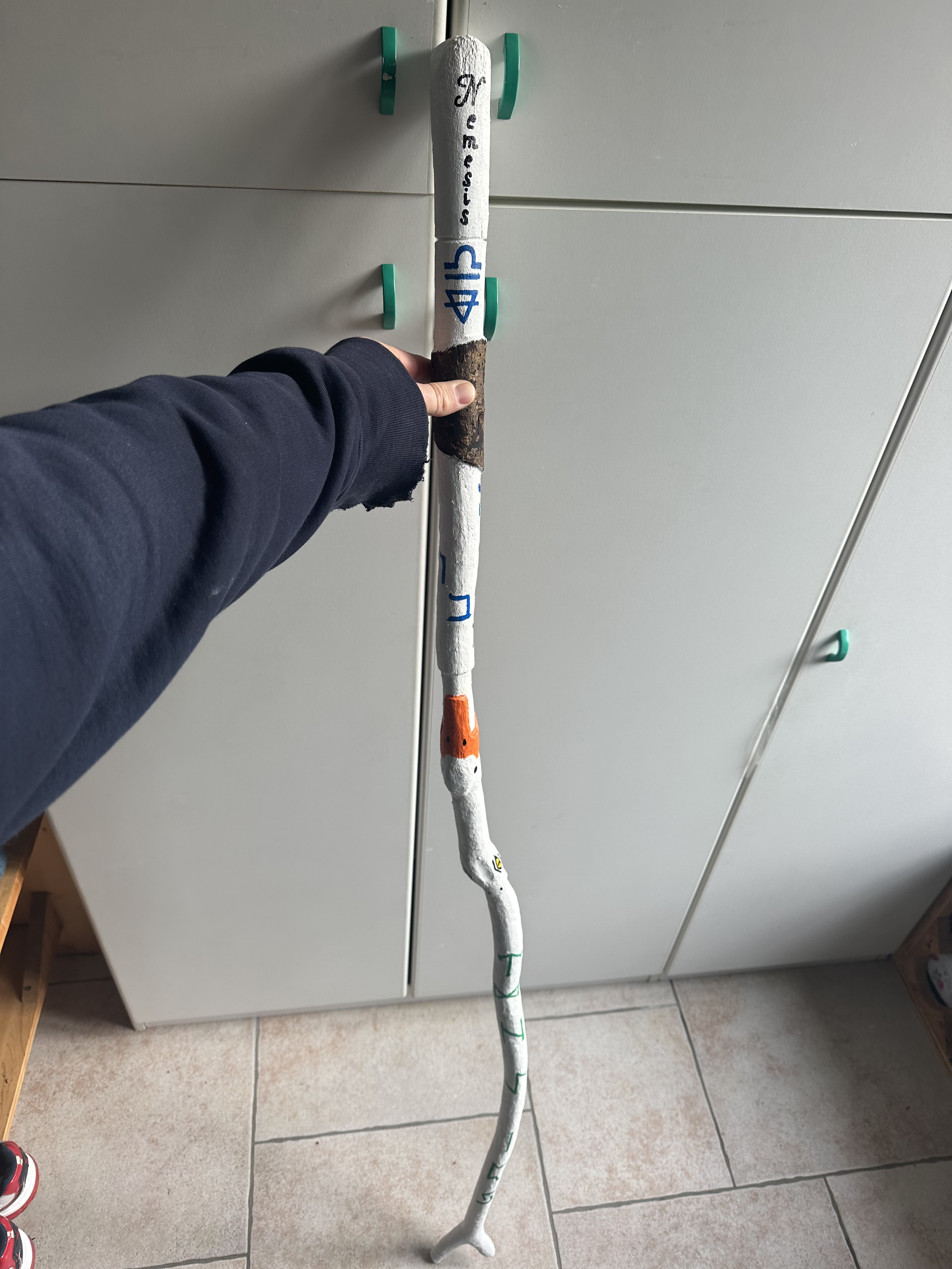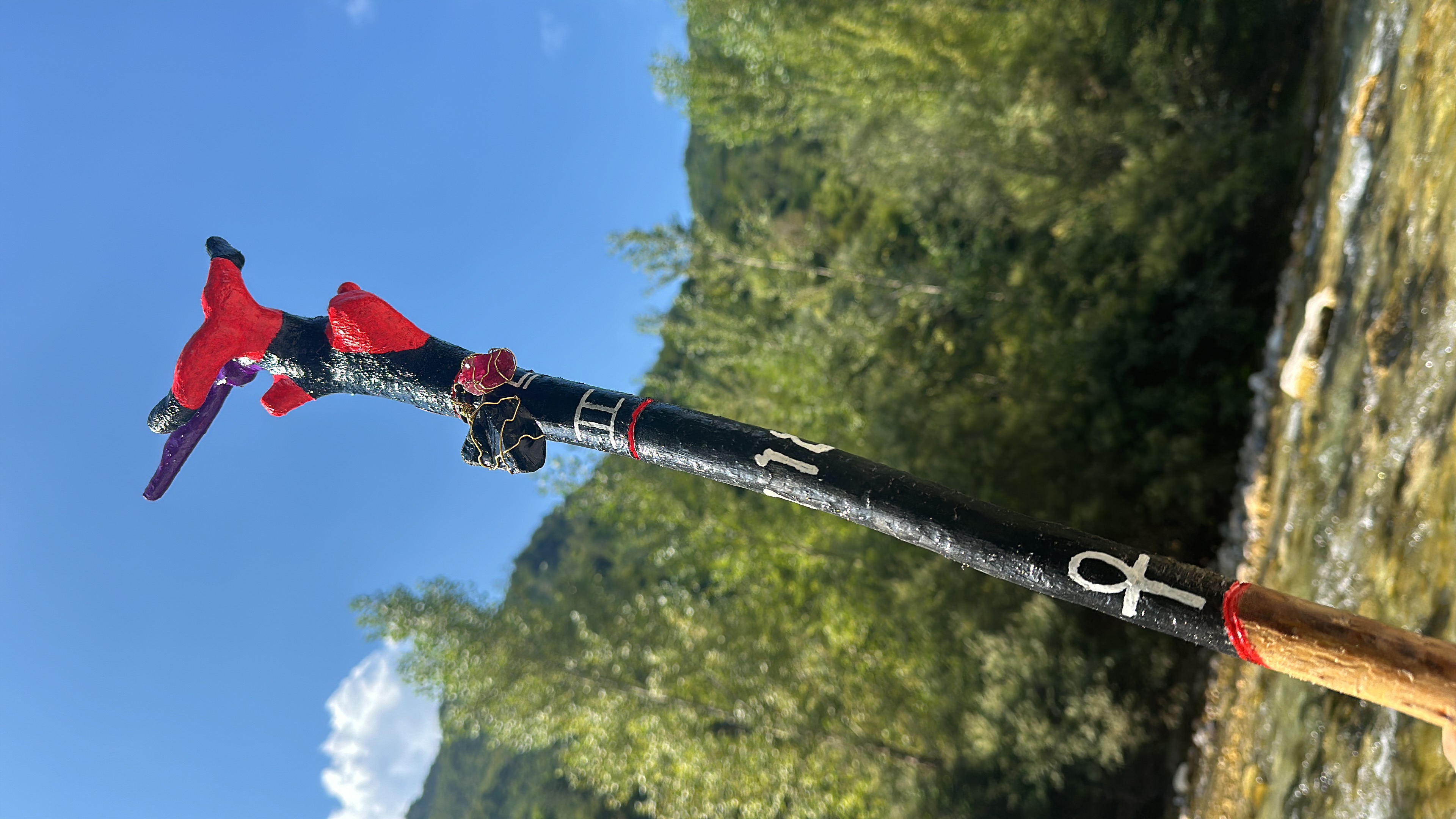 Questo bastone rappresenta la guida del mio femminile (forza/energia femminile). La divinità che regola questa forza/energia è la dea greca Nemesis