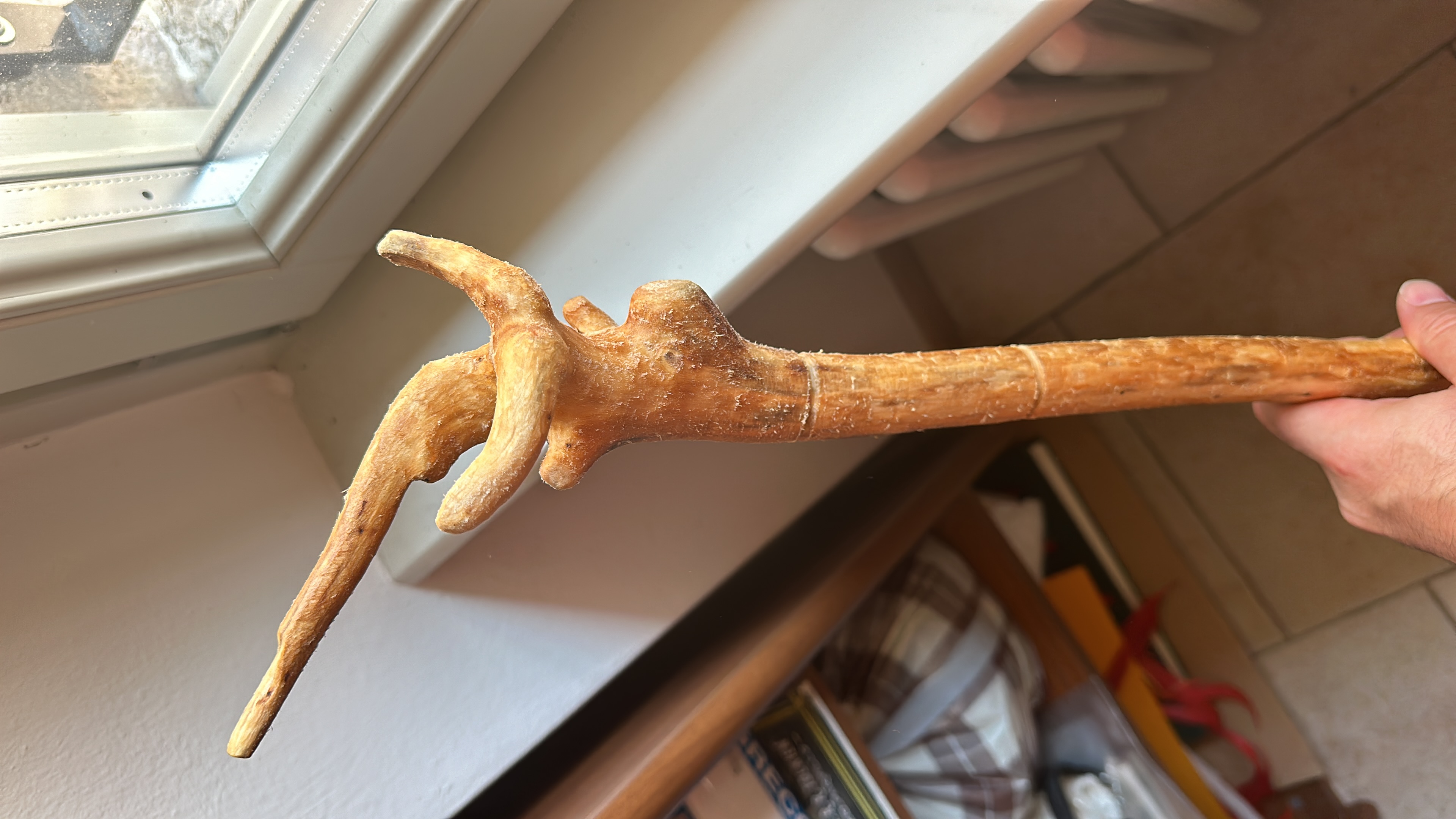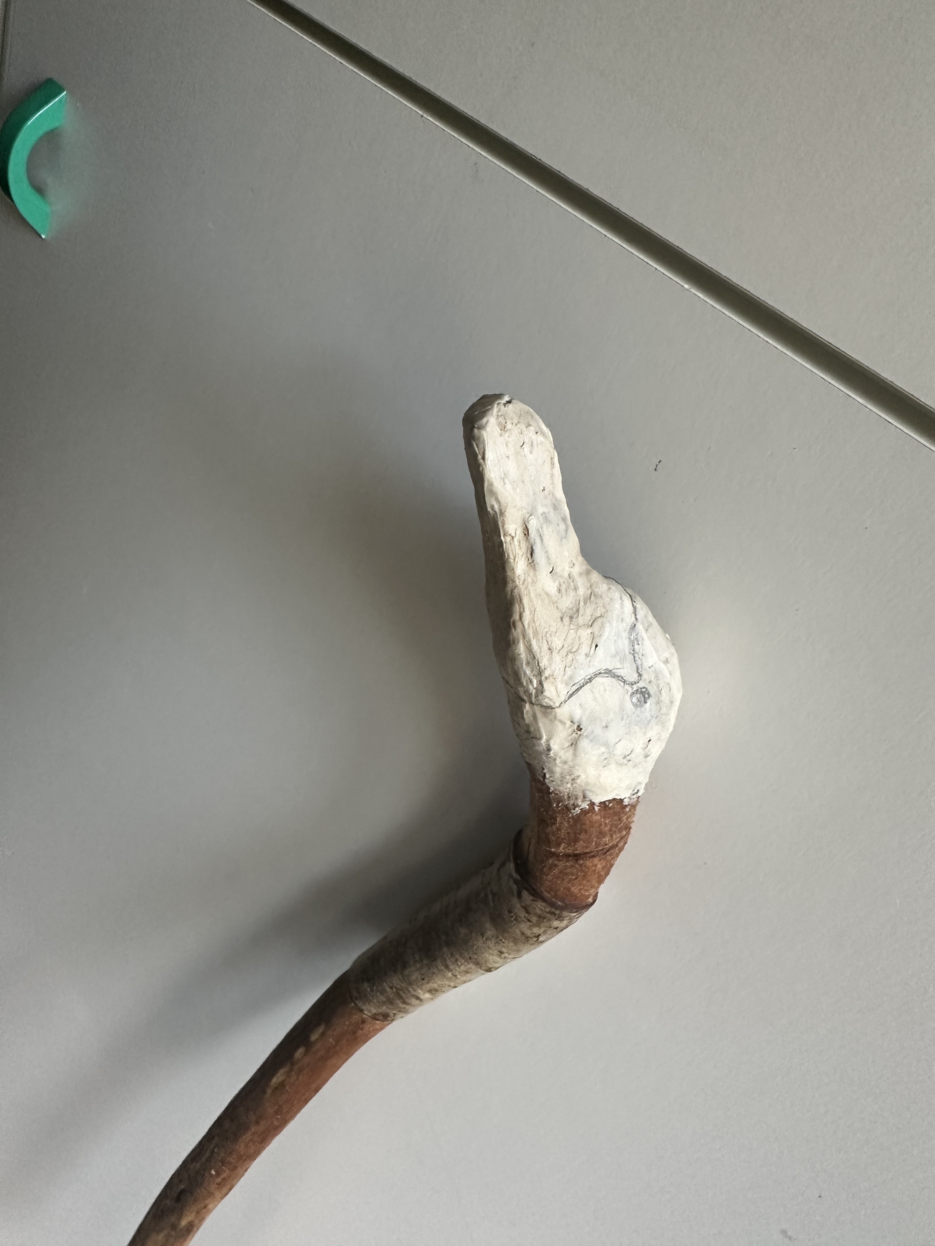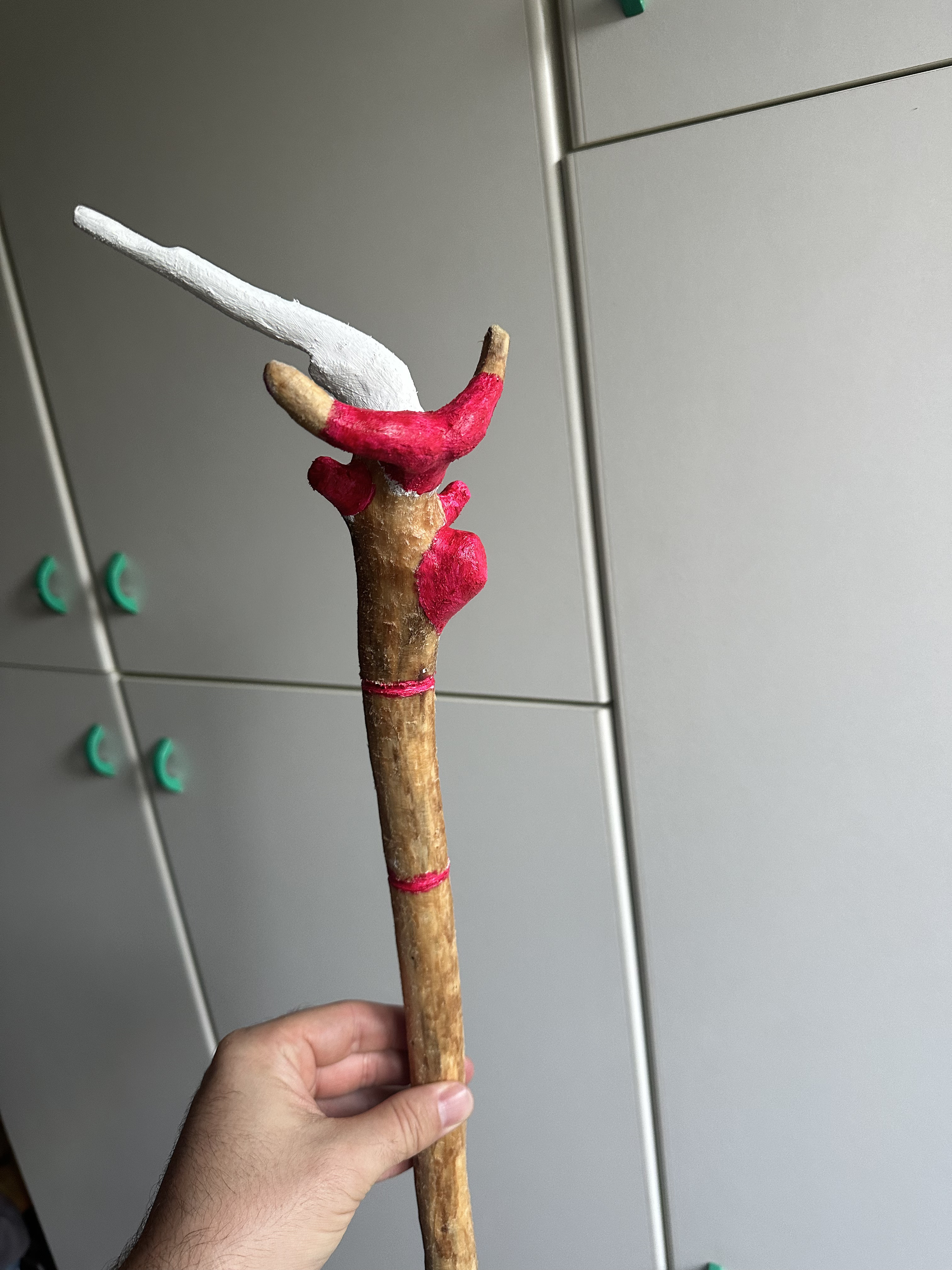 1. Lavorazione dell'impugnatura del bastone progettata per il suo utilizzo rituale.