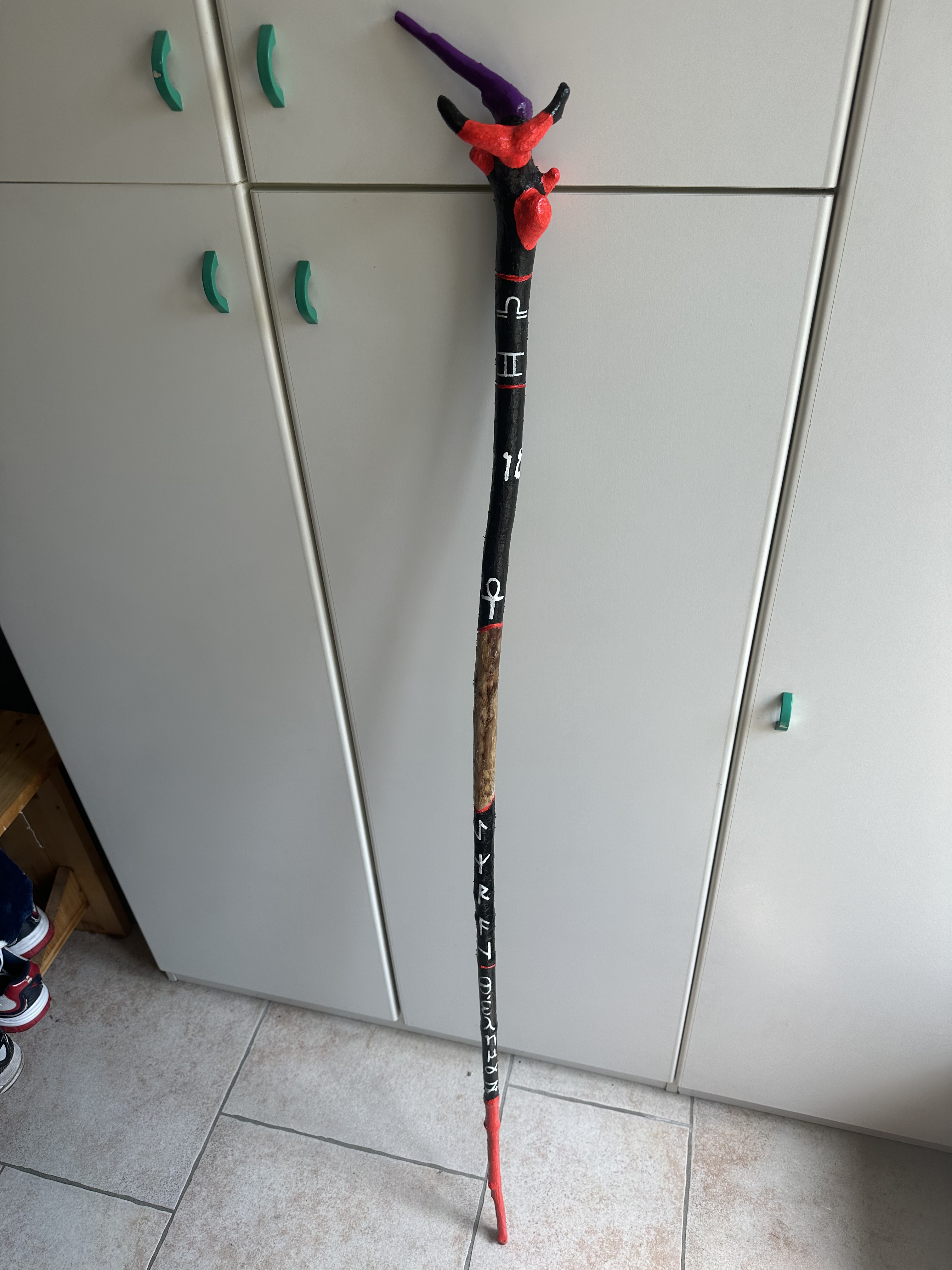 Questo bastone rappresenta il Bastone delle Direzioni, protezione e chiarezza nella scelta della via, fondamentale per un viandante.