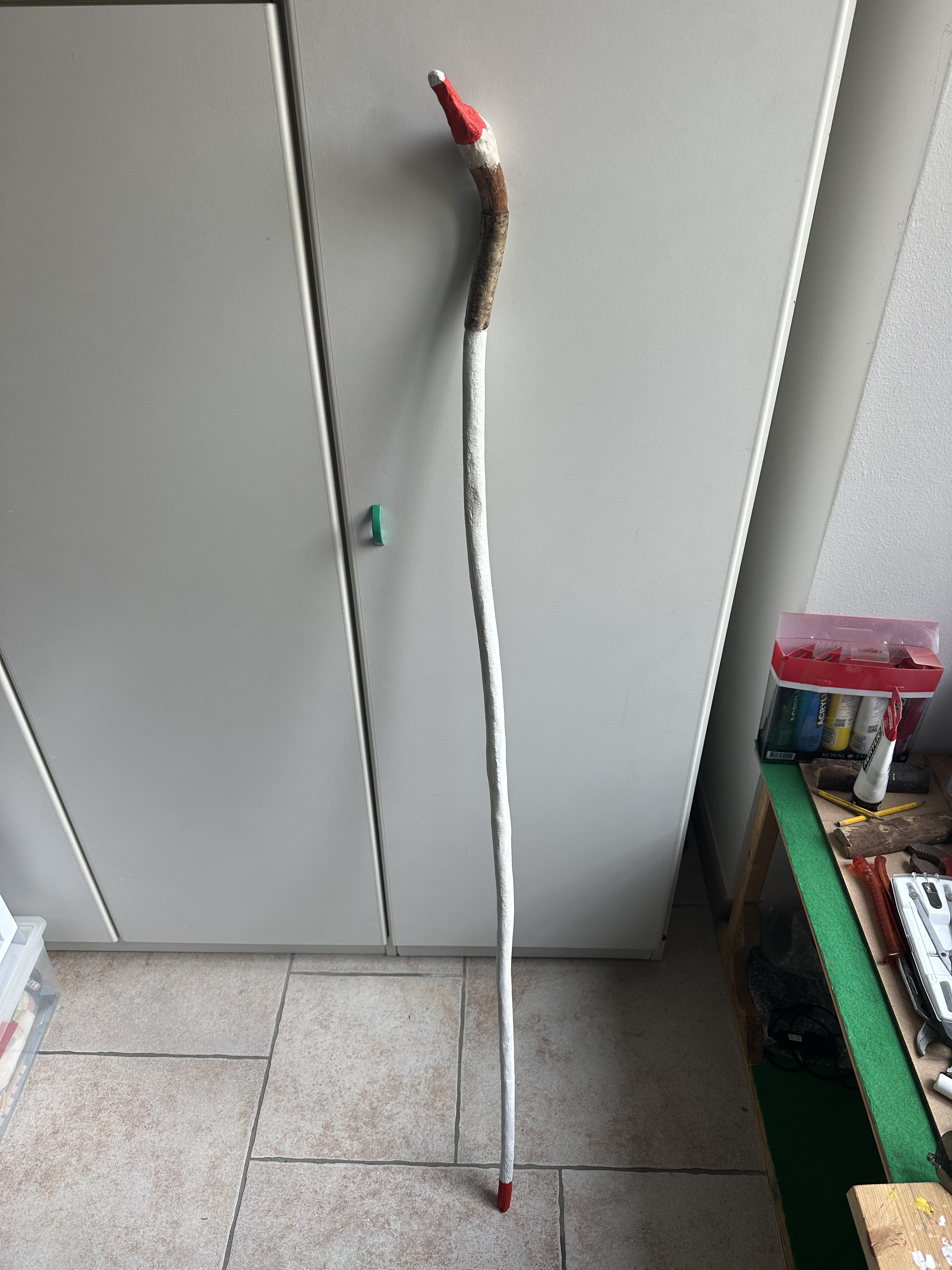 9. Prima lavorazione di scultura del serpente che mancia il bastone.