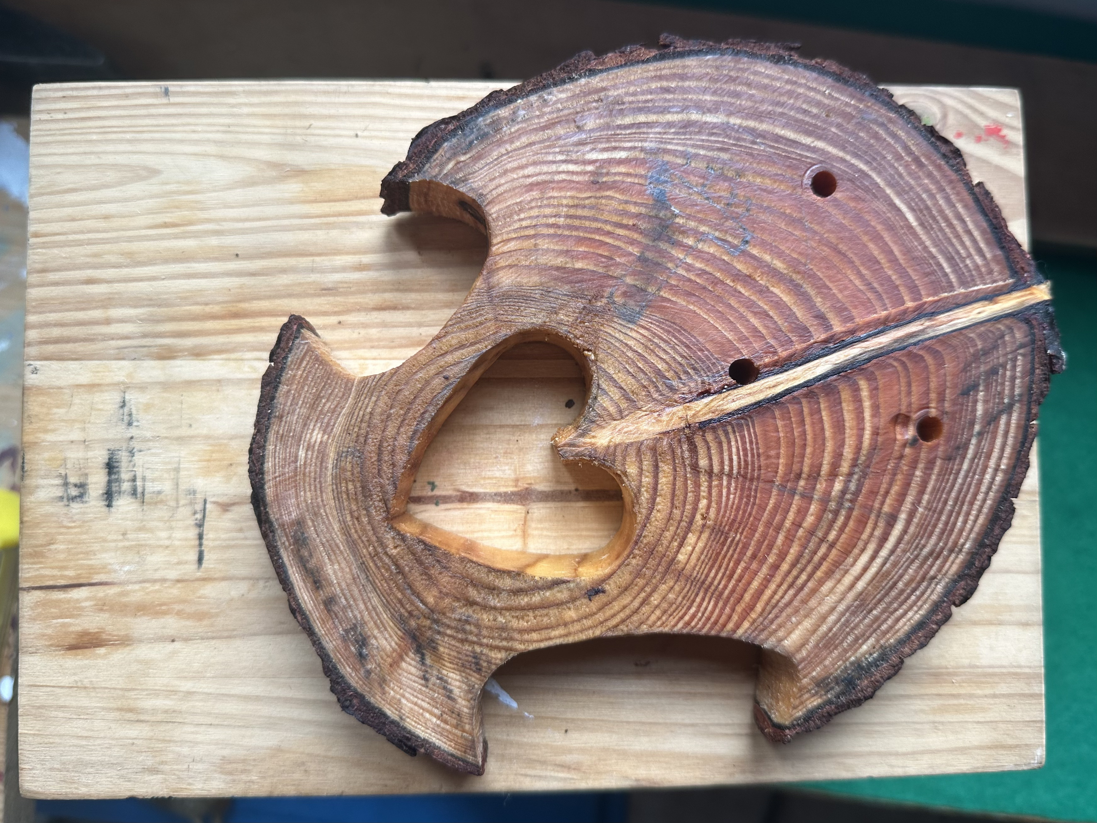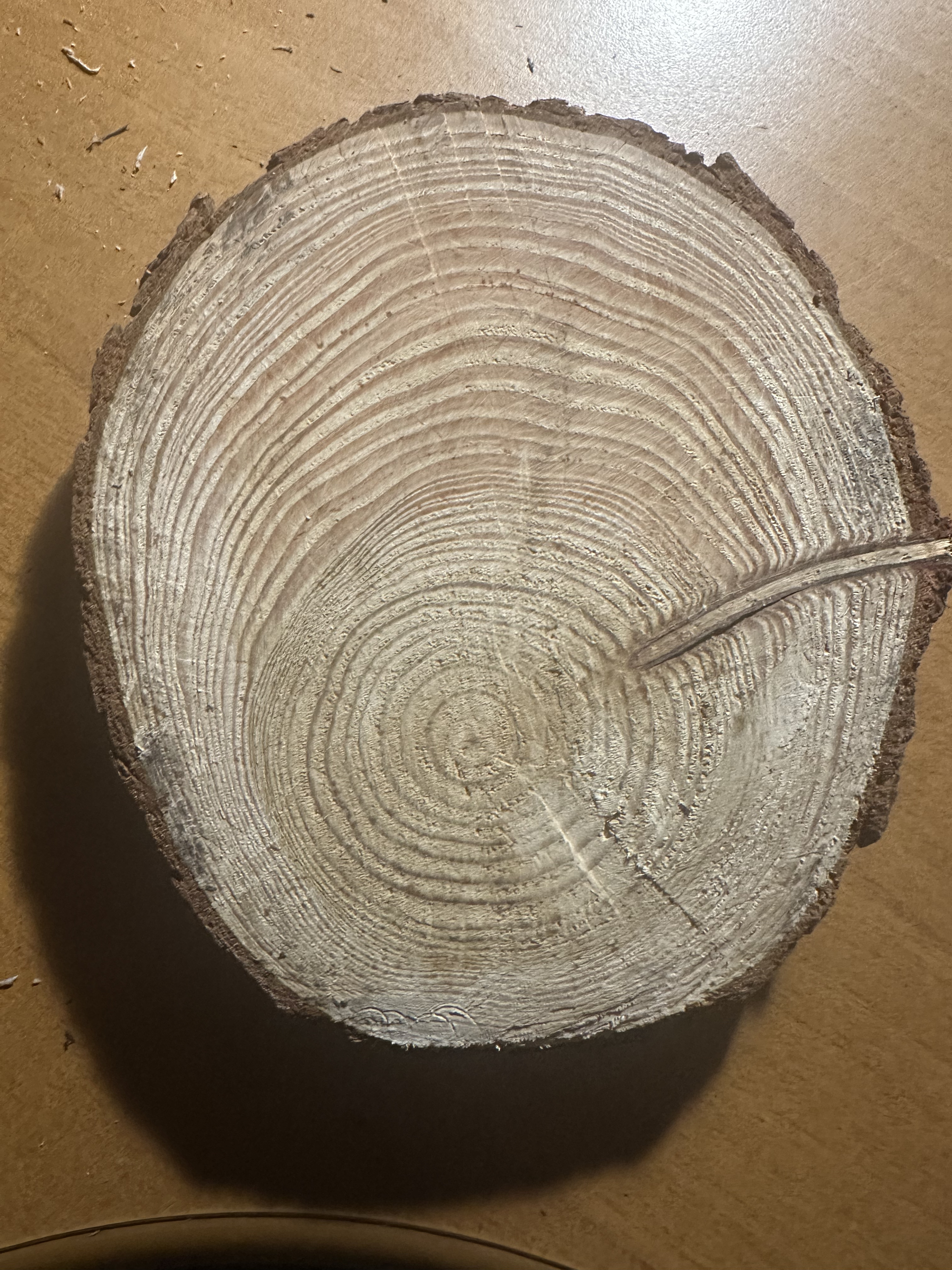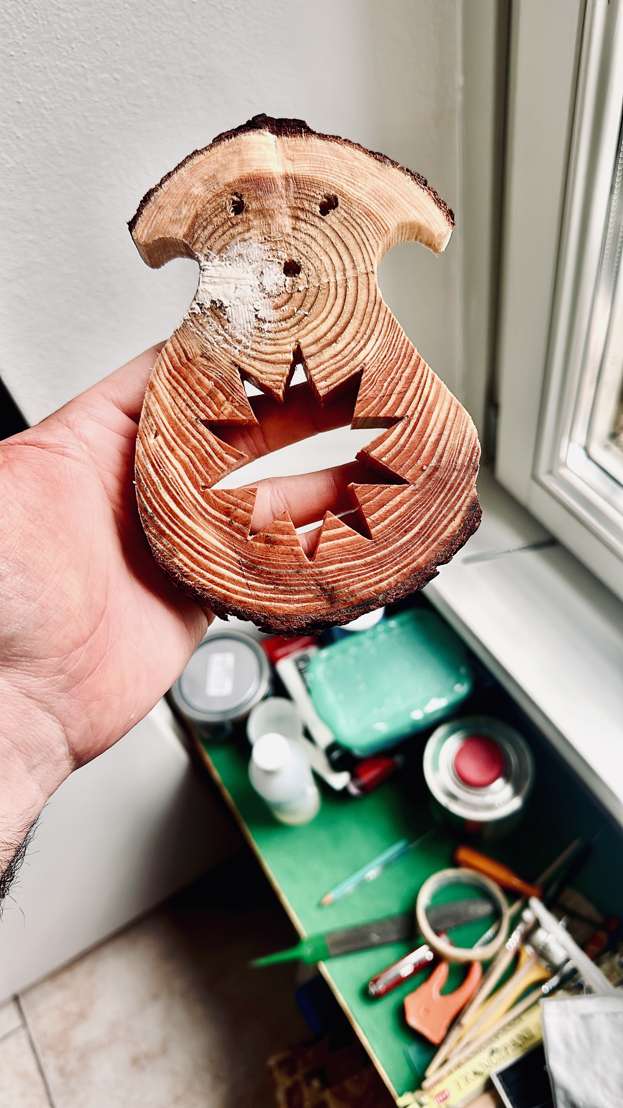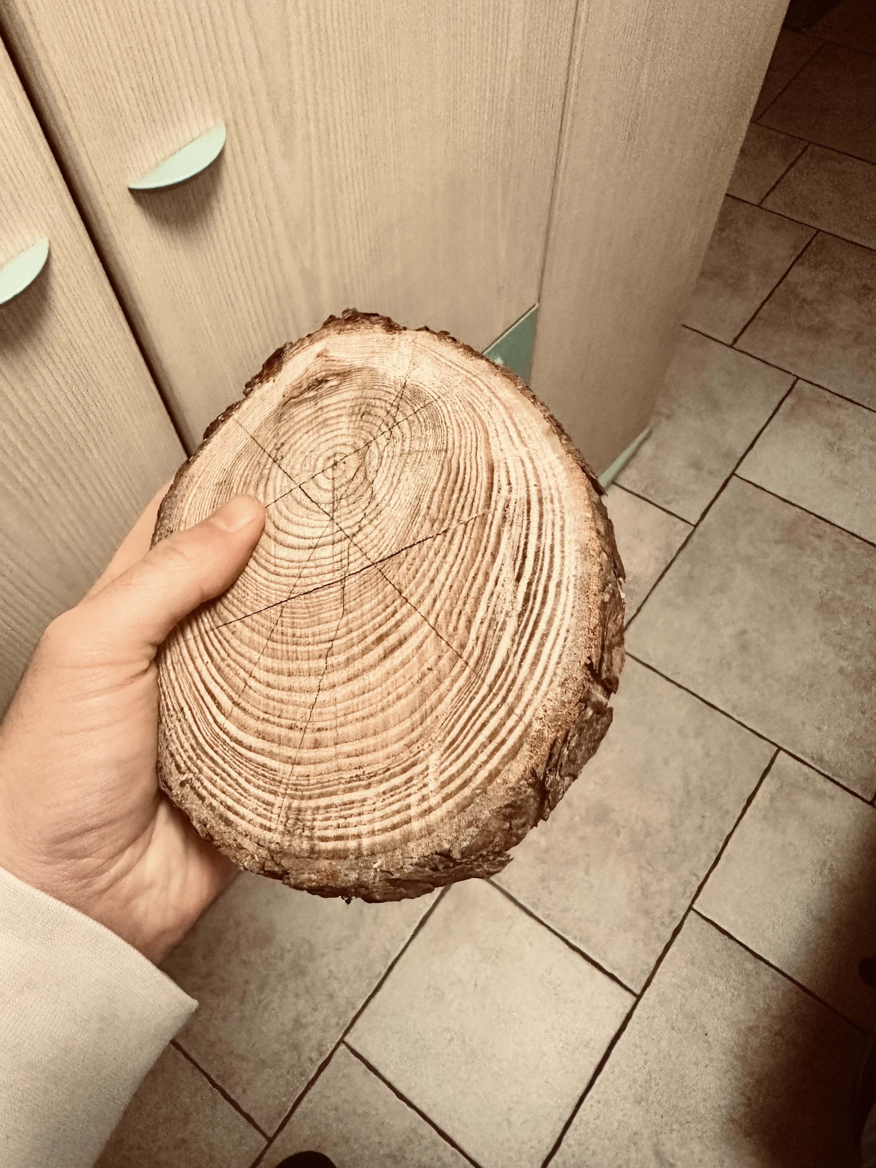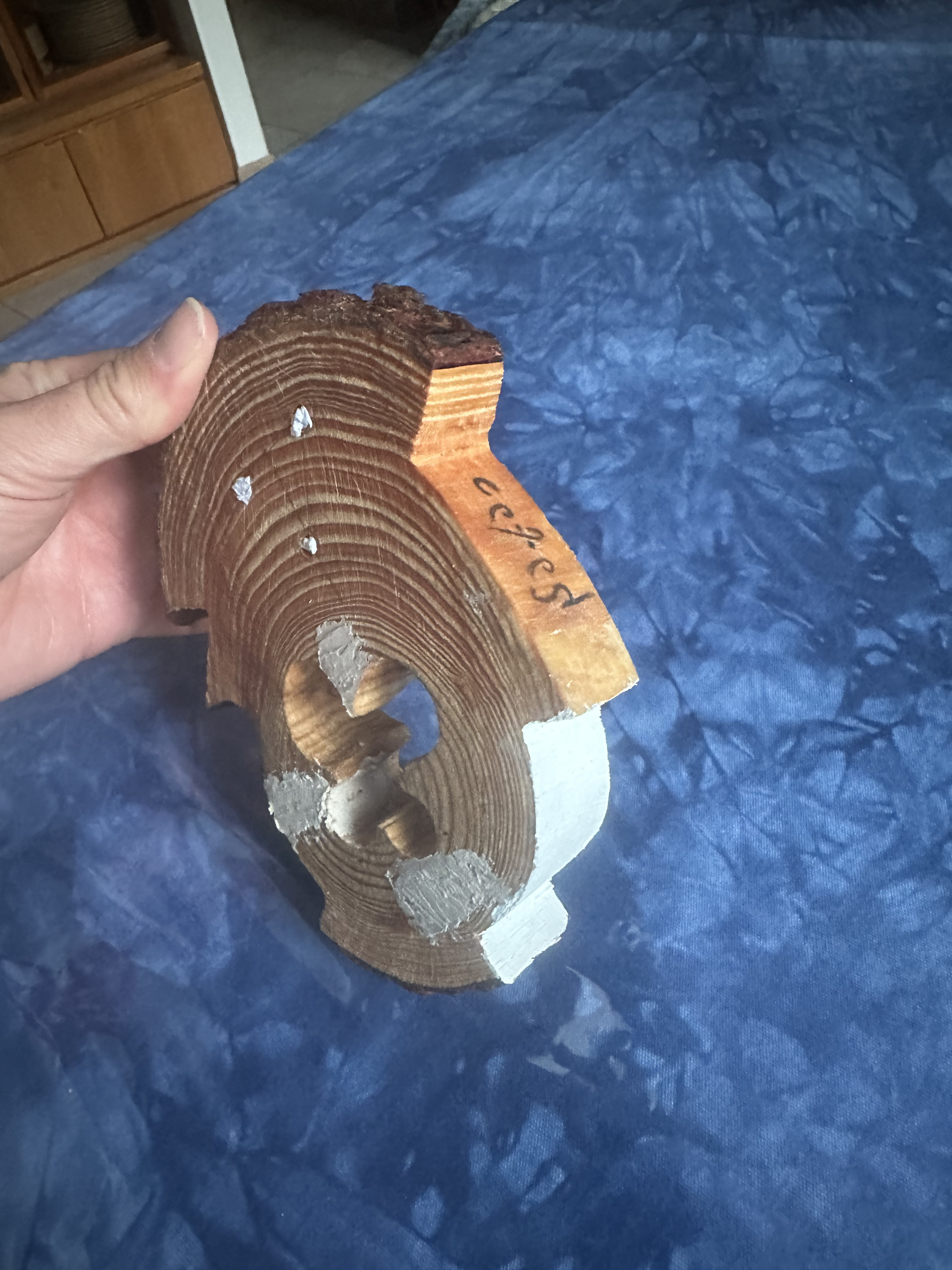 Questo pendaglio rituale è il secondo della serie "chakra" proveniente dallo stesso ciocco di legno e quindi di pino della Valle di Gresta (TN).