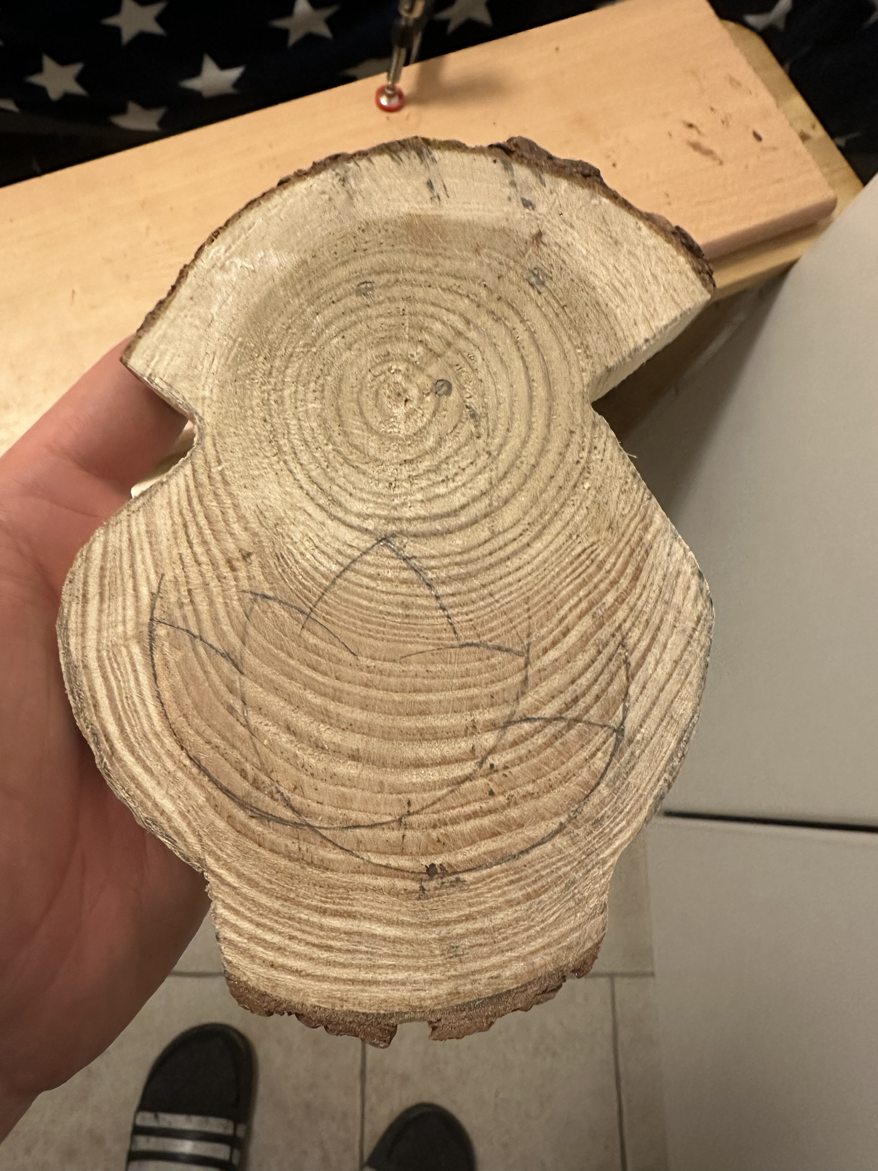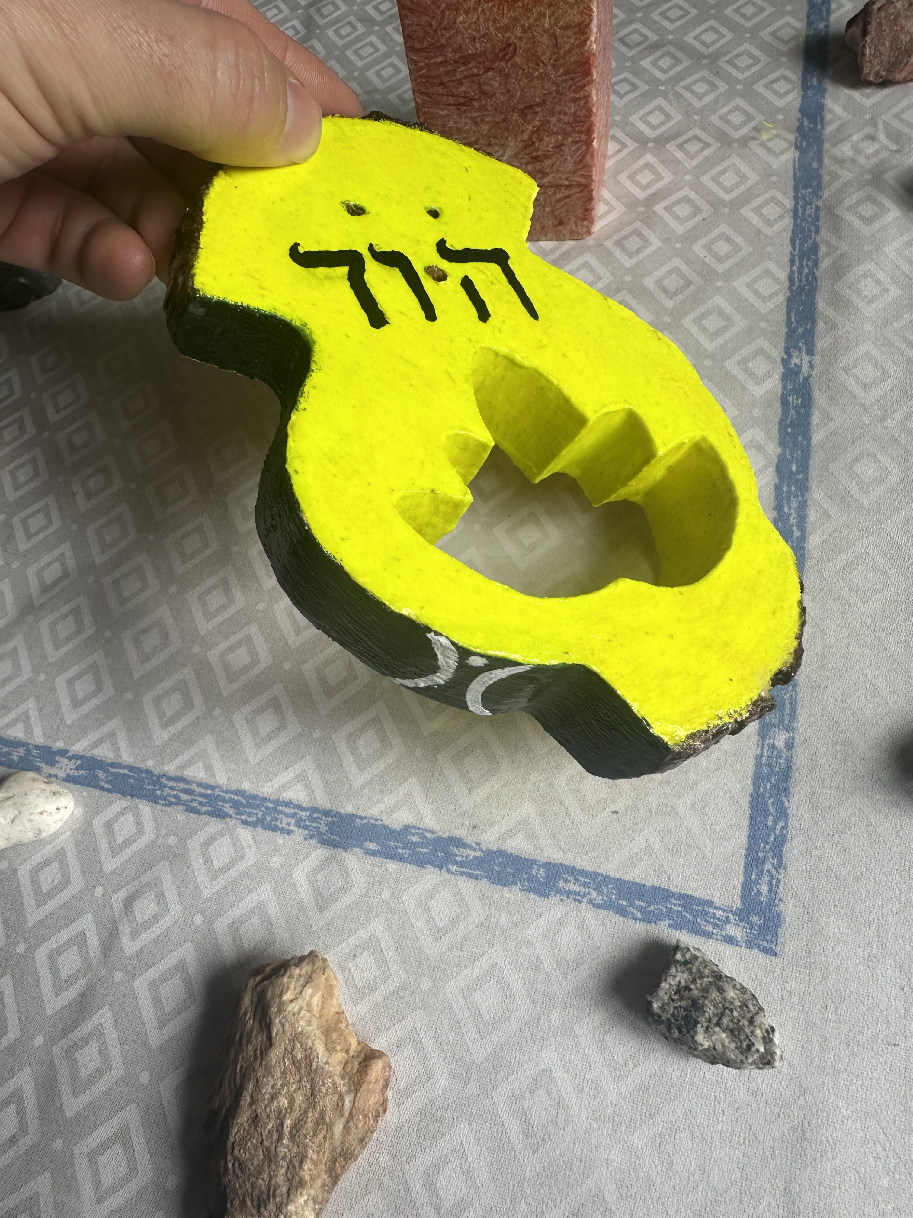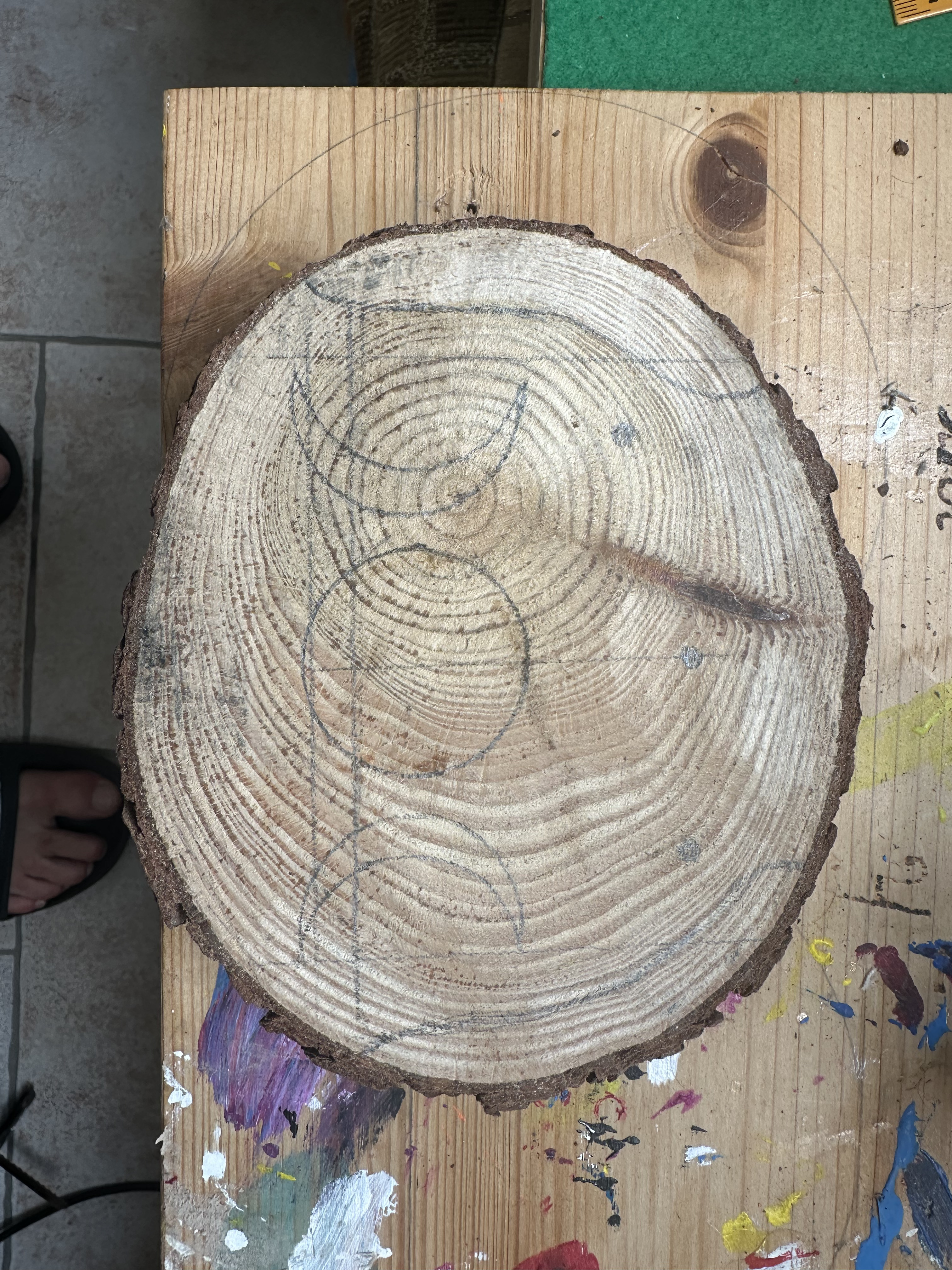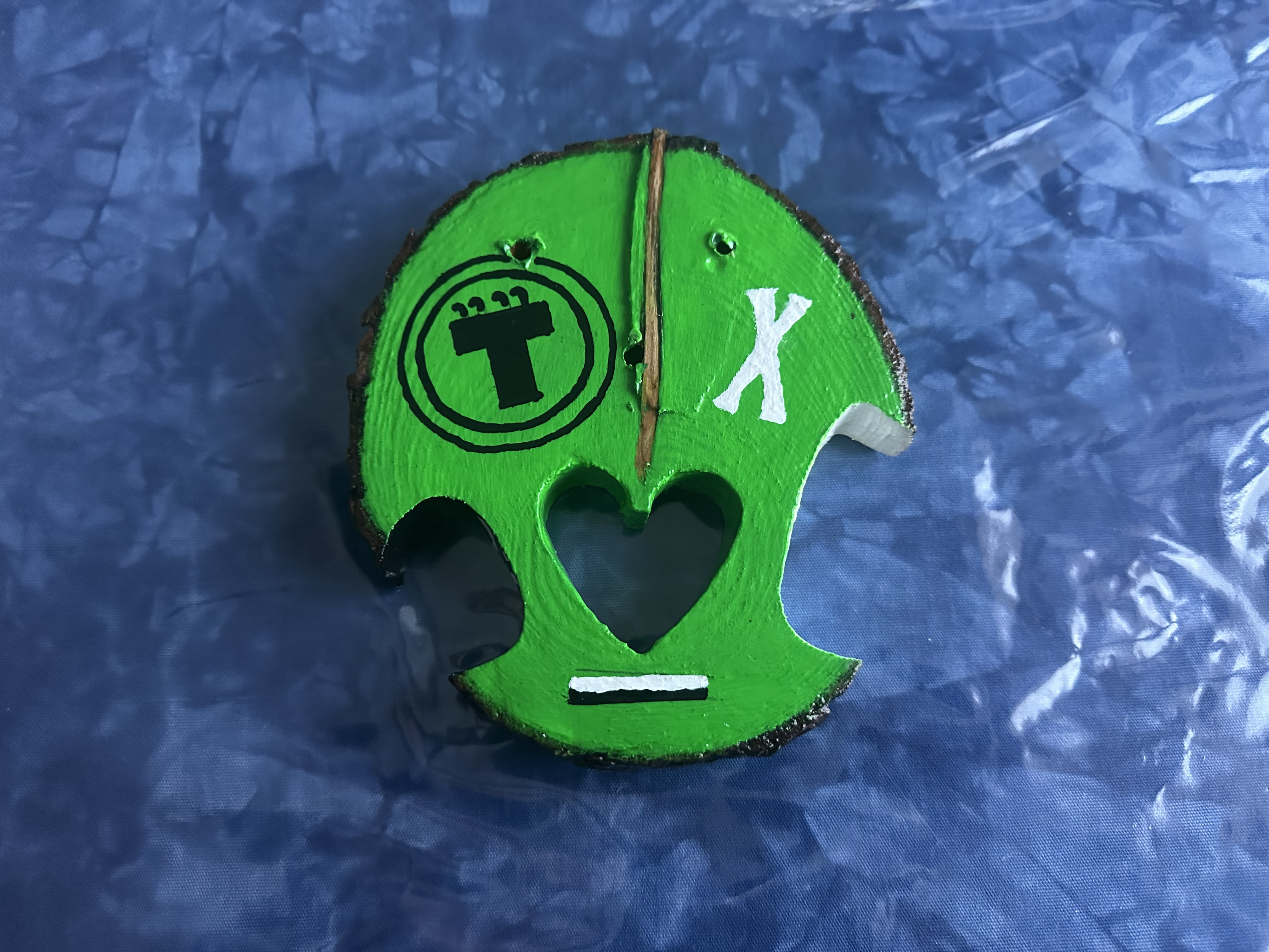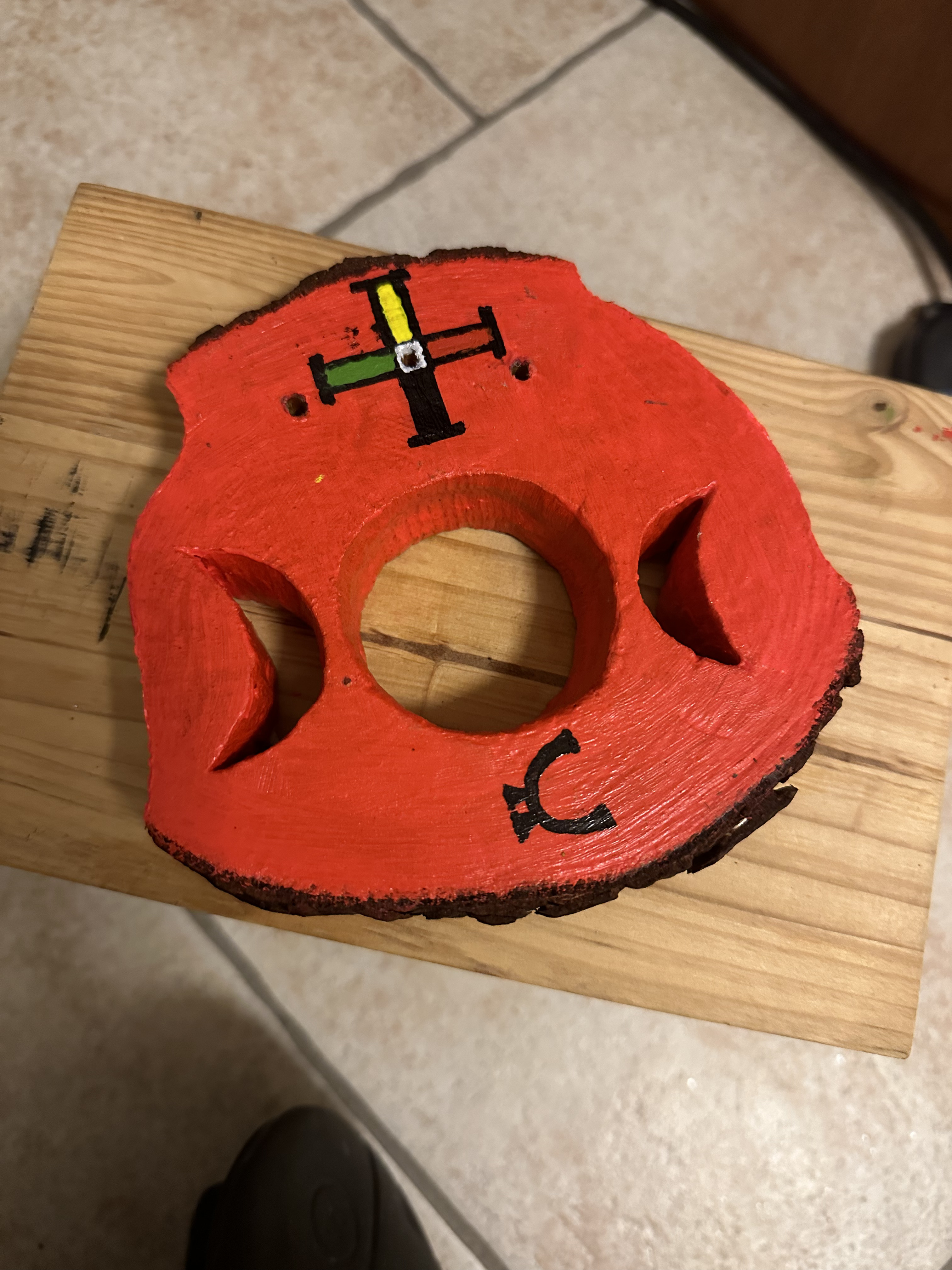 Questo pendaglio rituale è stato completamente creato in diverse canalizzazioni senza una vera intenzione precisa; forme e simboli sono usciti da essa senza una premeditazione. Il legno utilizzato è un pino della Val Di Gresta (TN).