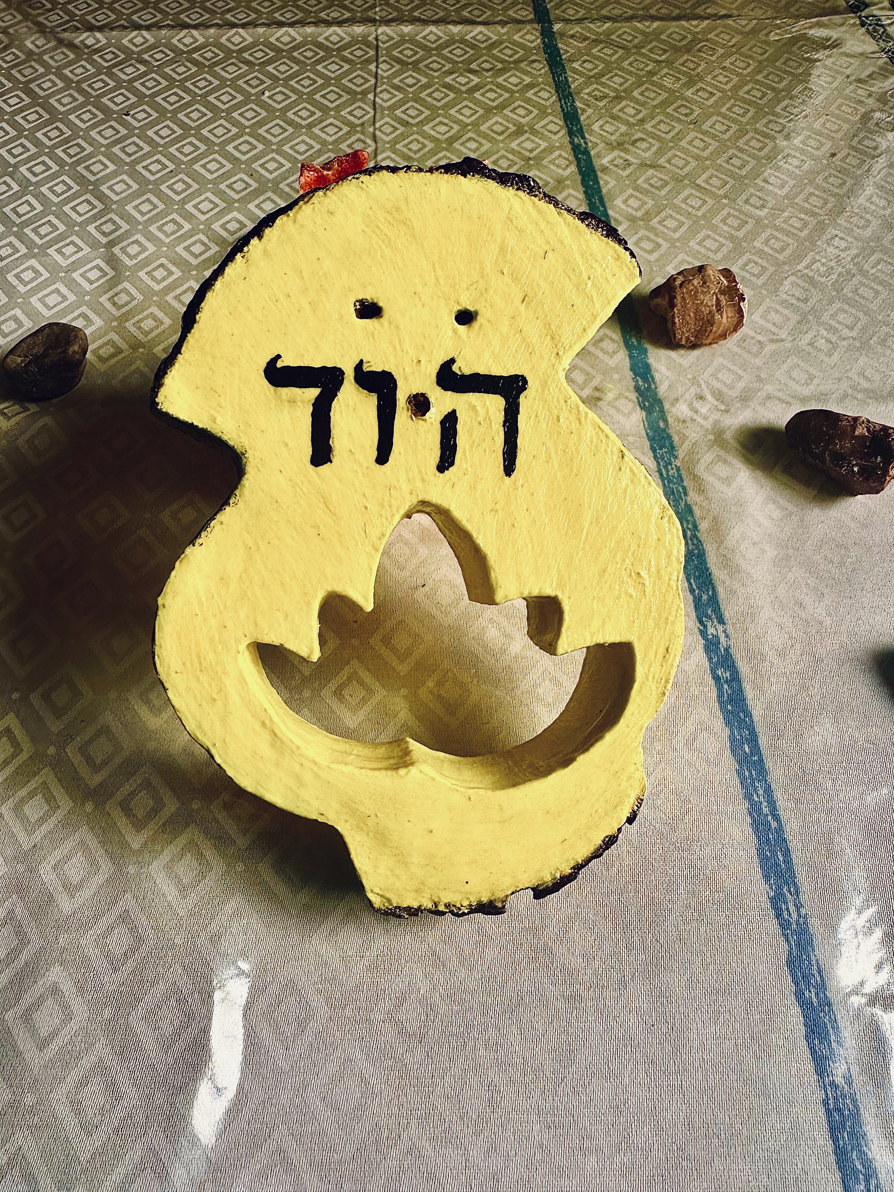 4. Scrittura in ebraico bianca su sfondo rosso della Sephira D'AAT: la Conoscenza.