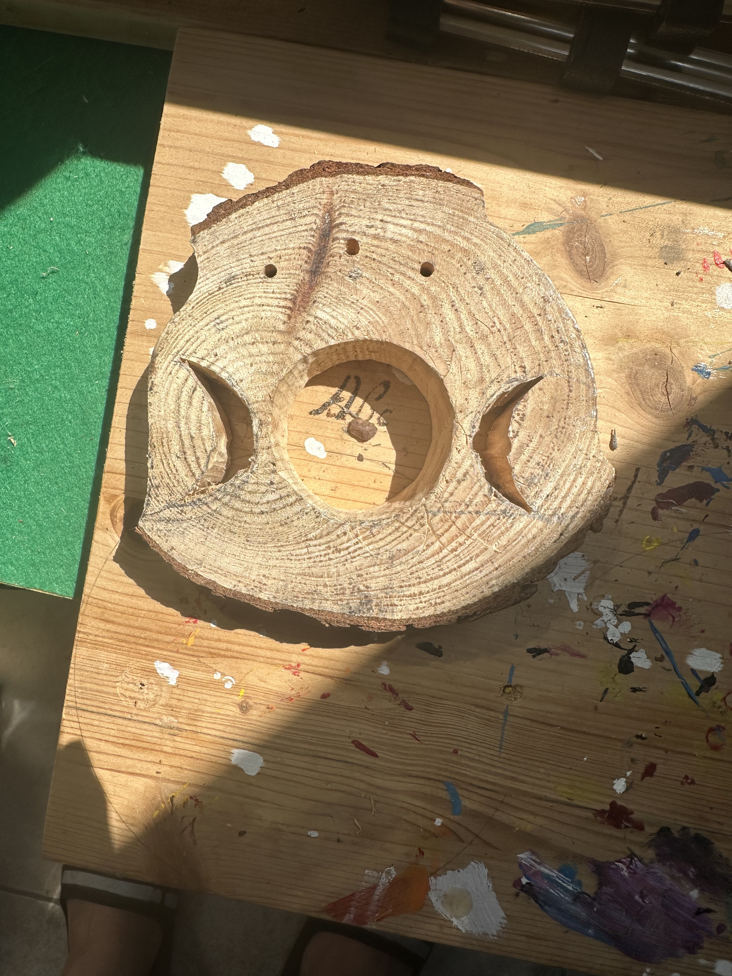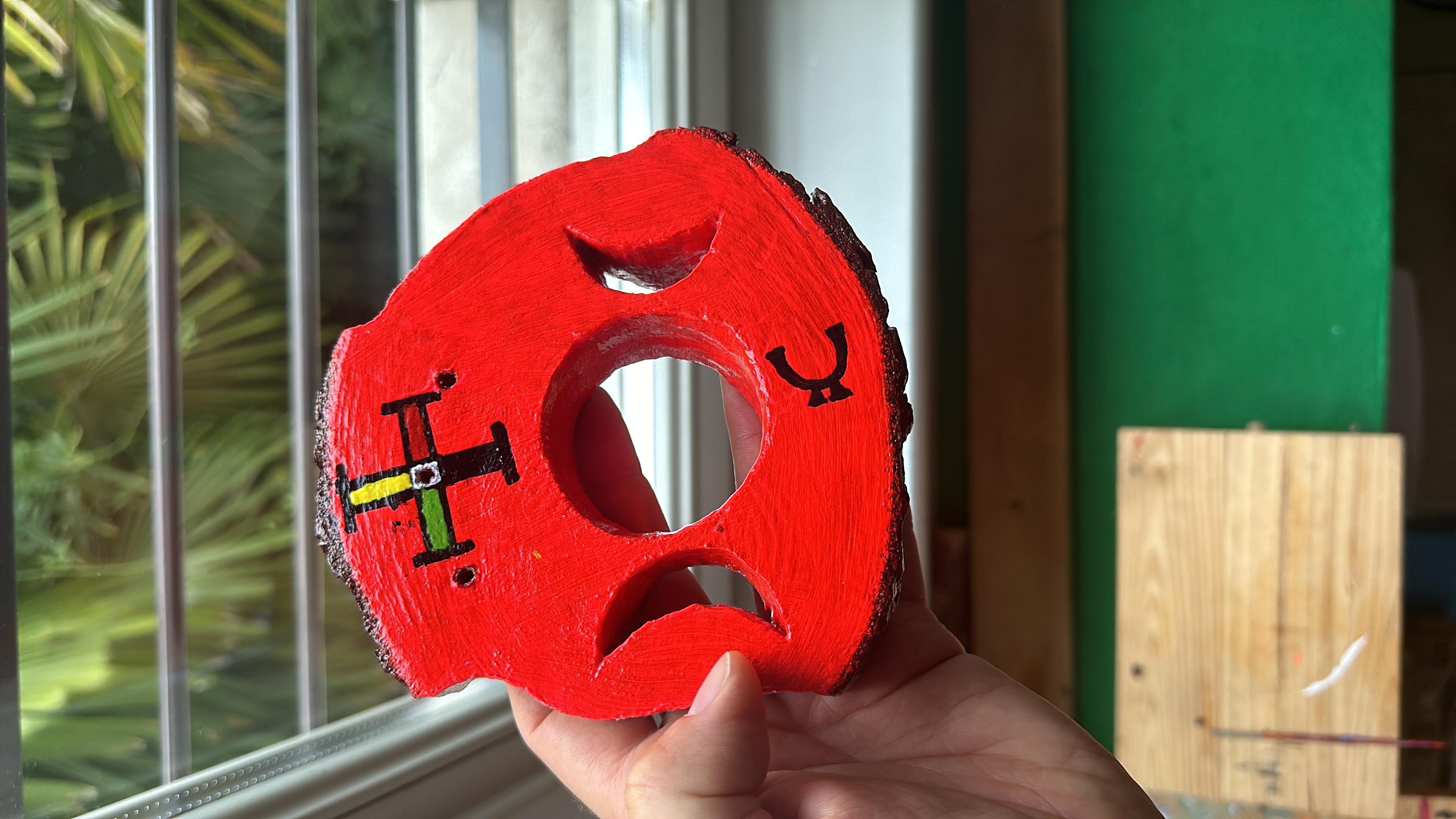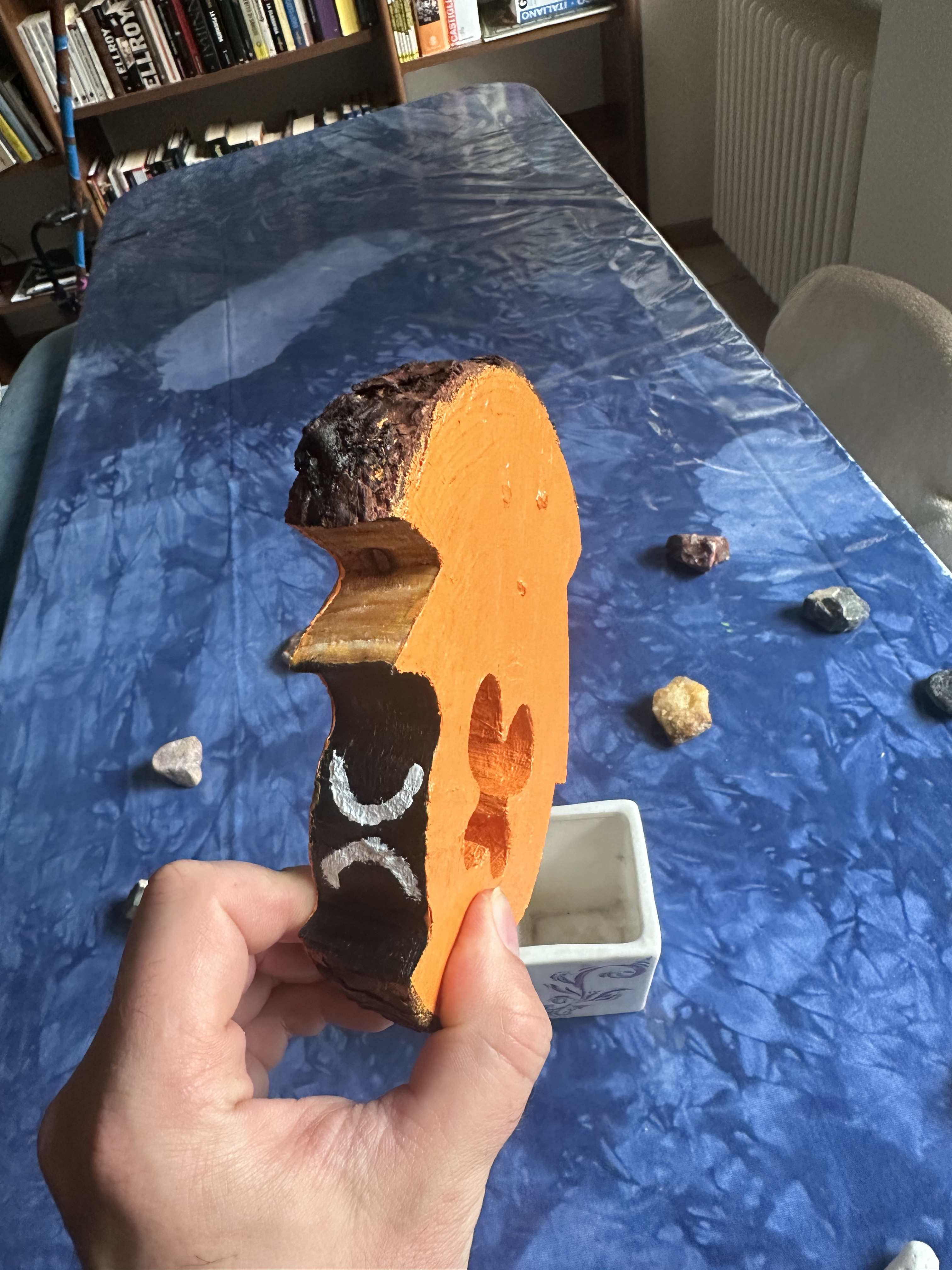 5. Dopo strati di olio di Lino e olio di Camelia (per evitare che il legno marcisca), uso di colori acrilici e vernice lucida da esterno, per creare uno spessore protettivo al colore per eventuali contusioni e il contatto con l'acqua.