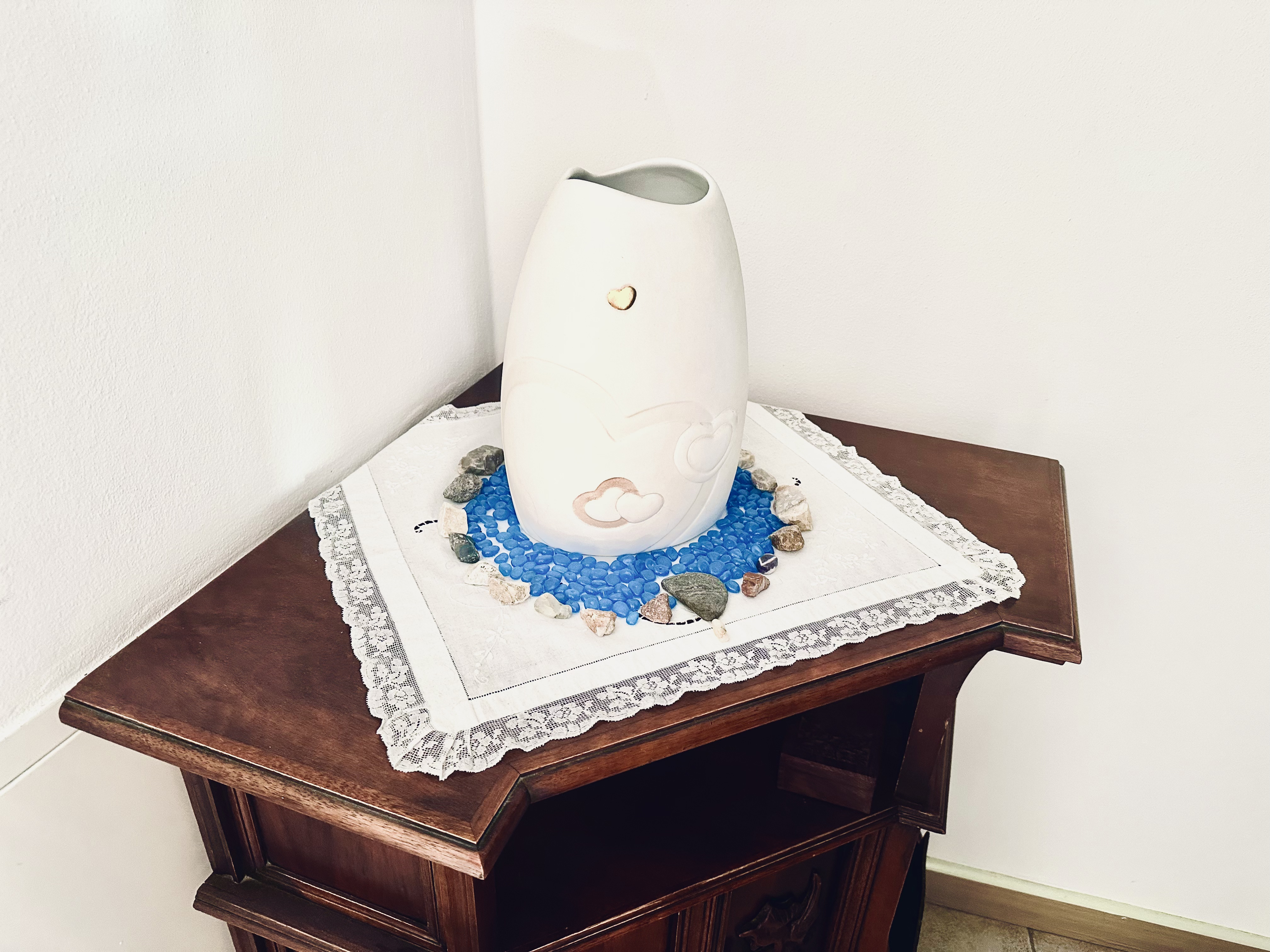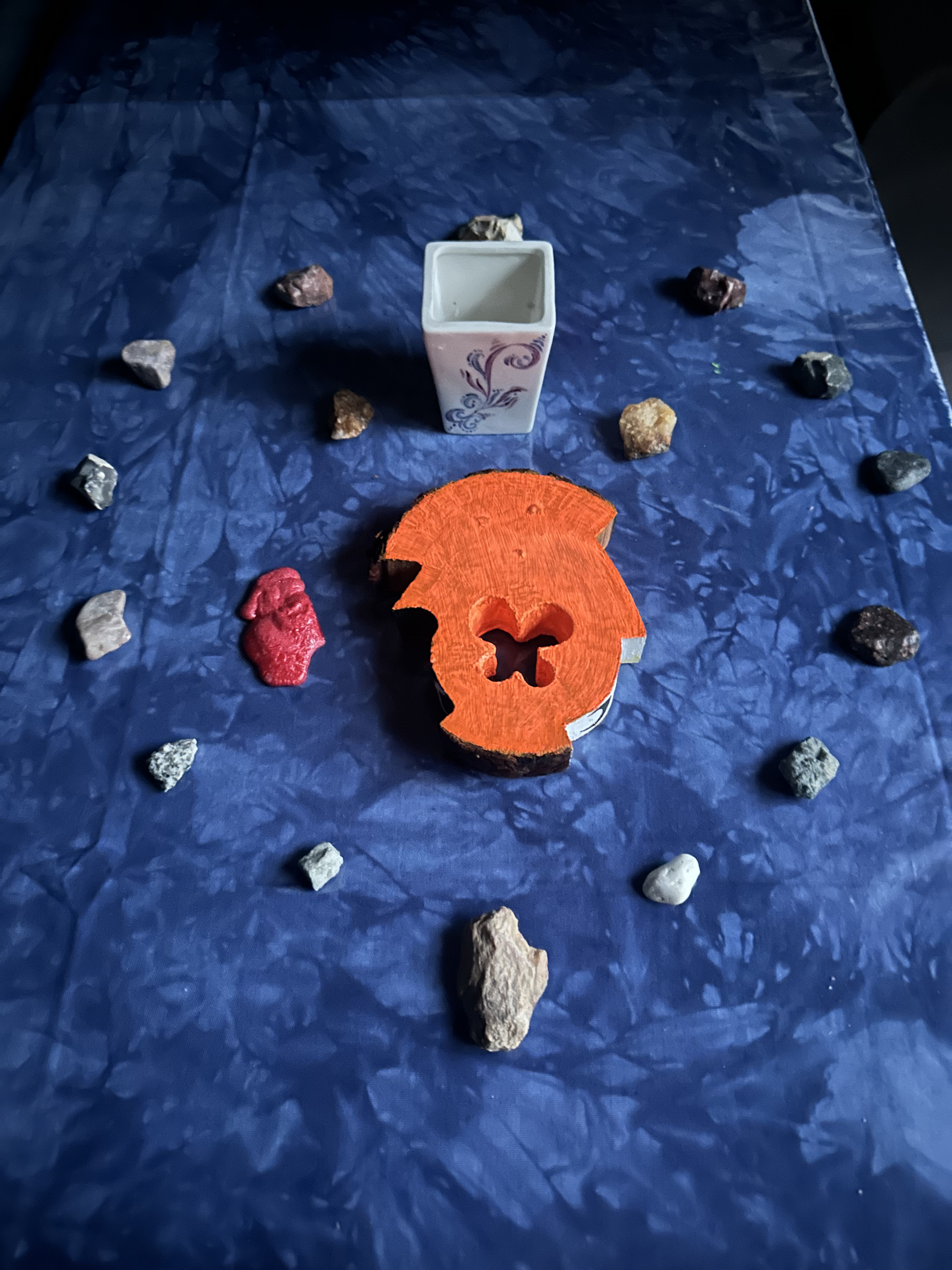 Questa composizione artistica rappresenta il Cuore circondato dagli spiriti degli antenati e da pietre che hanno una storia,