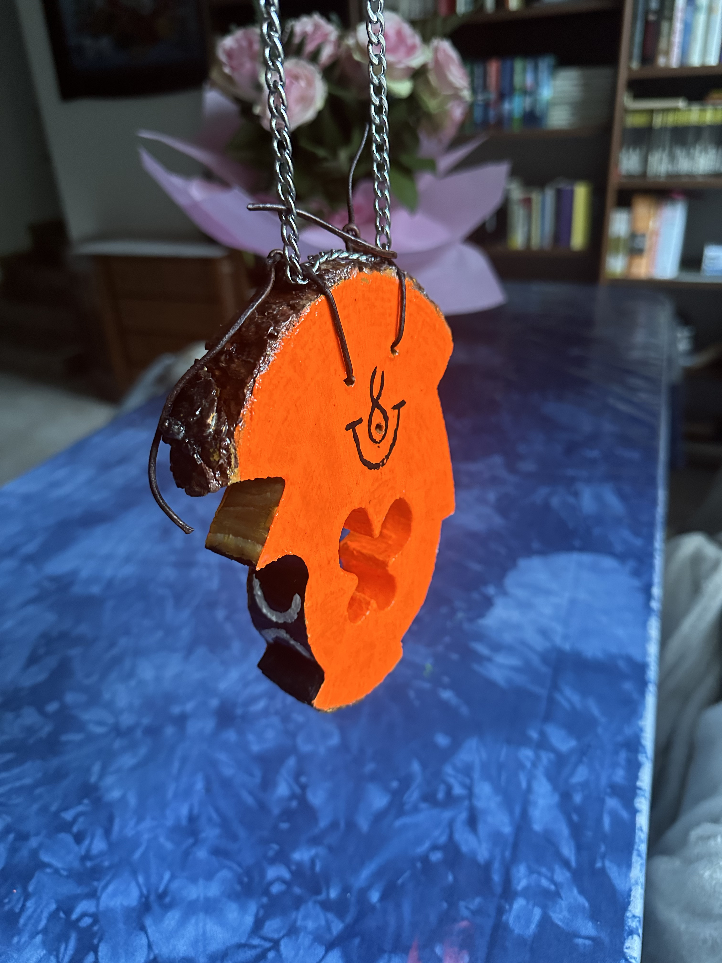 Questo pendaglio rituale è il terzo della serie "chakra", stesso ciocco di legno di pino degli altri.